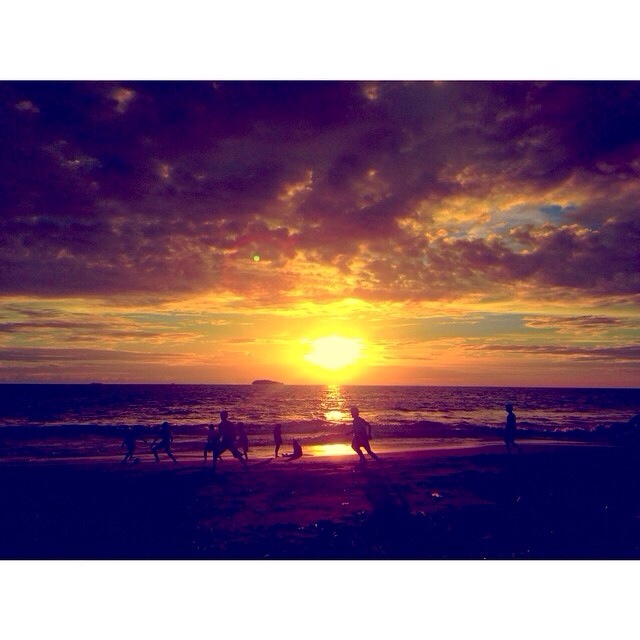 Saat sunset datang, it was sooo beautiful. Siluet nelayan dan anak-anak yang bermain bola dibingkai dengan garis langit berwarna kuning keemasan sungguh menenangkan jiwa. Lupa kalo harus pulang ke Jakarta. Setelah langit mulai gelap, kami berangkat ke bandara.