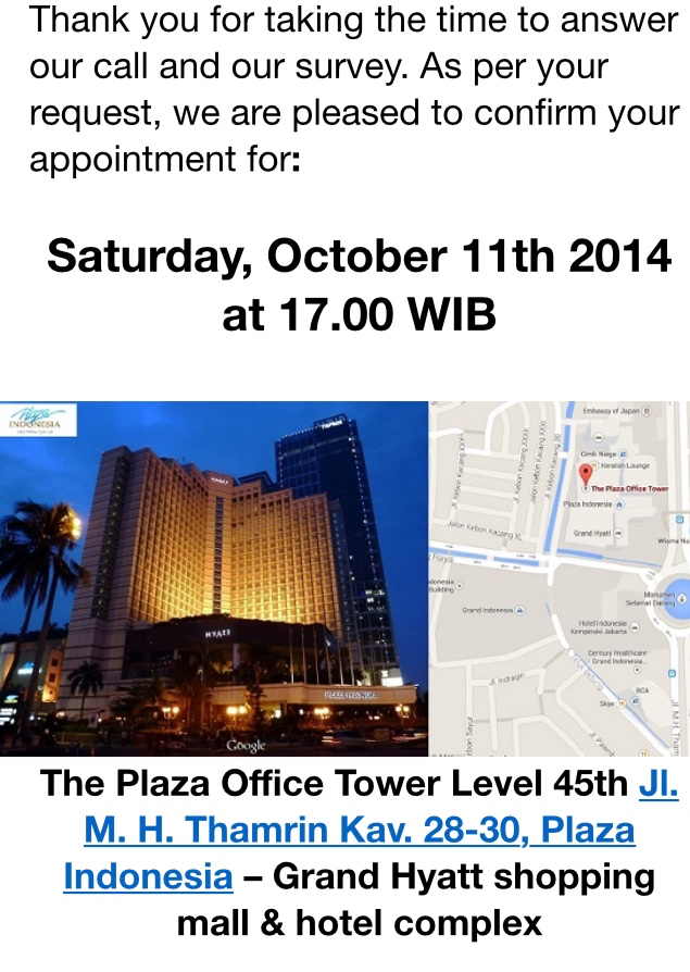 Jadi hari ini gue dapat undangan. Judul di undangan sih wine presentation, tapi ternyata saat datang baru tau kalo judul lengkapnya wine investment presentation. Di undangan disebutkan bahwa yang diundang akan dapat goodie bag berisi satu botol wine dan voucher belanja sejuta rupiah without any purchase obligation. Menarik, memang.