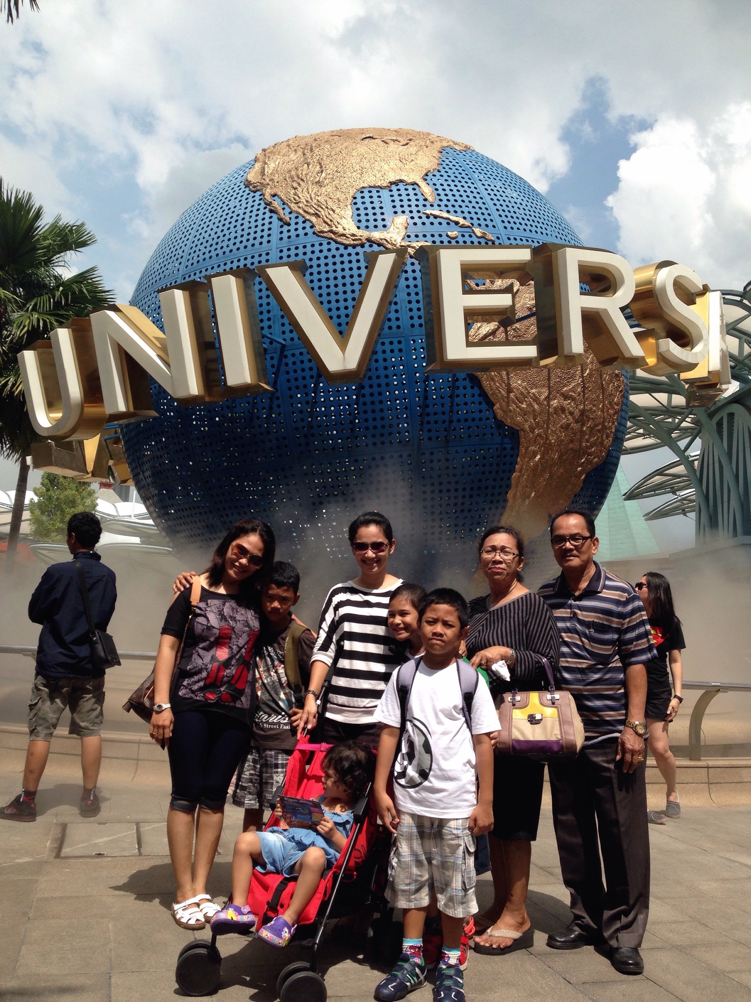 Beberapa minggu lalu gue ada business trip di Singapura. Jadi jauh-jauh hari gue udah berniat mengajak bapak-mama untuk sekalian jalan-jalan di sana pas weekend-nya. Secara udah kakek-nenek, mereka maunya jalan-jalan rame-rame sama cucu-cucunya. Dan setelah confirm ke bapak-emaknya masing-masing akhirnya diputuskan Om Bernard ‘harus’ traktir semuanya jalan-jalan di Singapura. Yang ikut bapak, mama, adek, kakak ipar, dan 5 ponakan berumur 11, 9, 7, 7, dan 2 tahun. Udah kebayang kan gimana rasanya?