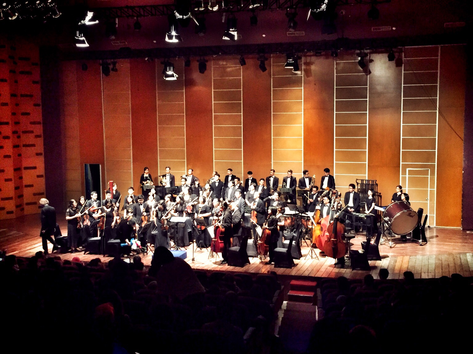 Tahun ini juga pertama kalinya gue dapat kesempatan nonton live orchestra. Semacam konser musik klasik. Tempatnya di gedung Usmar Ismail. Feeling gue sih mengatakan bahwa ini bukan konser musik klasik yang sebenar-benarnya. Karena gak ada dresscode, penonton masih ada yang seliweran pas musik dimainkan, ada yang sambil makan, dll. Tapi pengalaman tersebut menyenangkan kok walaupun gue tidur di separuh konser :))))