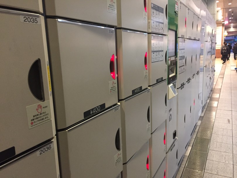 Dari lokasi meeting di Hamamatsu, rombongan melakukan perjalanan ke Kyoto menggunakan Shinkansen. Karena gue udah rencana untuk nginep di Osaka, maka gue angkut koper gue ikut dalam perjalanan ini. Perjalanan ditempuh selama kurang lebih 1,5 jam. Supaya gak ganggu acara, maka koper dan barang-barang lain dititipkan di Kyoto Station. Di stasiun terdapat coin locker yang harga sewanya berbeda-beda tergantung dari besarnya locker. Untuk menyimpan koper seukuran cabin size gue menyewa loker seharga 700 Yen. Kalau gak punya koin, tersedia mesin penukar koin di dekat loker. Untuk ukuran koper yang sangat besar dan gak muat di dalam loker, bisa dititipkan di tempat penitipan. Harga sewanya relatif sama dengan loker dan barang bisa dititipkan hingga jam 8 malam.
