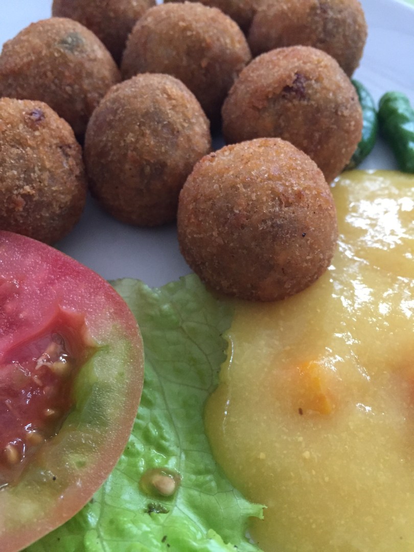 Karena sudah lapar (as always 😝), gue langsung pesen makanan besar dong. Bitterballen, nasi goreng kampung daaan sate babi. Bitterballen-nya disajikan panas-panas, rasanya biasa aja. Nasi gorengnya enak walaupun gak luar biasa. Sate babinya….awesome! Teksturnya lembut, juicy, dan bumbu kacangnya enaaaak.