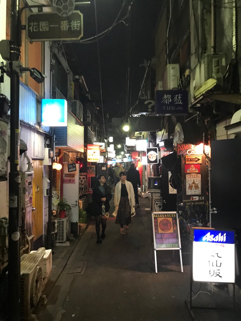 Di tengah perbincangan mereka bercerita tentang satu tempat nongkrong sambil minum-minum di Shinjuku yang langsung menarik perhatian gue. Selesai makan kami langsung menuju ke tempat tersebut untuk melanjutkan obrolan ringan sambil minum-minum. Nama tempatnya adalah Golden Gai.