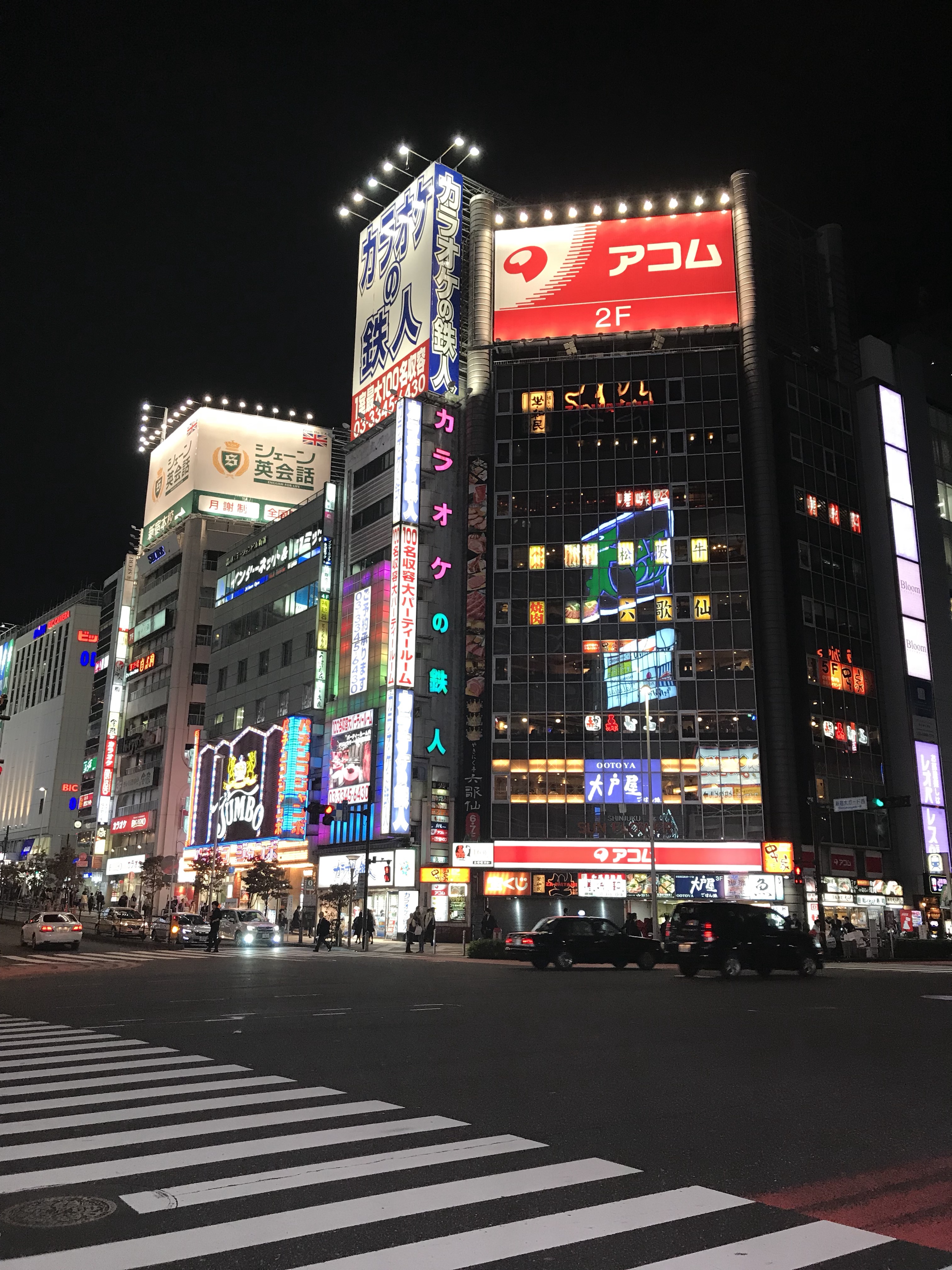Pada malam terakhir gue berada di Tokyo, gue ketemuan dengan teman lama. Karena udah lama gak ketemu, kita mau bareng-bareng strolling around Tokyo menikmati malam terakhir di daerah Shinjuku. Seperti sudah banyak diketahui, selain Shibuya, Shinjuku adalah distrik yang sangat terkenal dengan night life-nya. Lampu-lampu masih menyala hingga tengah malam. Toko-toko dan mall memang sudah tutup jam 10 malam, tapi restaurant, cafe, dan bar masih buka hingga menjelang dini hari.