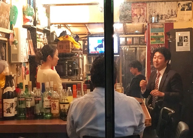 Jangan bayangin bar yang fancy dan mewah. Bar-bar di Golden Gai tampak seperti kamar kos. Dengan ukuran yang kecil, bar-bar tersebut cuma menyediakan 5-8 kursi. Itupun duduknya mepet-mepet. Tapi hampir semua bar terisi dengan pengunjung dan mereka terlihat begitu menikmati minuman mereka lengkap dengan obrolan ringan. Yes, karena pengunjung cuma sedikit dan duduknya saling berdekatan, pengunjung bar tersebut jadi ngobrol satu sama lain, juga dengan pemiliknya/bartendernya.