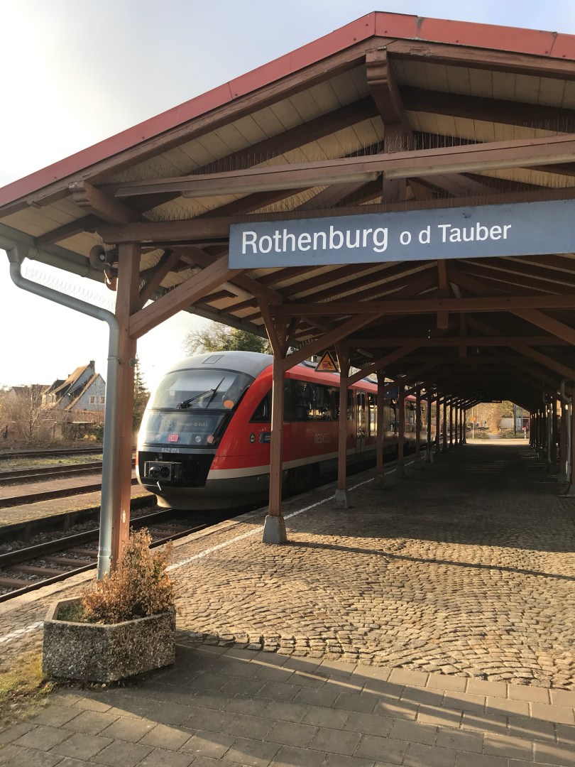 Mata masih setengah terpejam saat kereta dari Frankfurt tiba di stasiun Rothenburg pagi itu. Maklumlah, gue tiba di Frankfurt tengah malam dan memutuskan untuk menginap di airport sebelum pagi-pagi berangkat ke Rothenburg. Frankfurt-Rothenburg ditempuh dalam waktu 3 jam lebih dengan 2 kali transit di Würzburg dan Steinach.