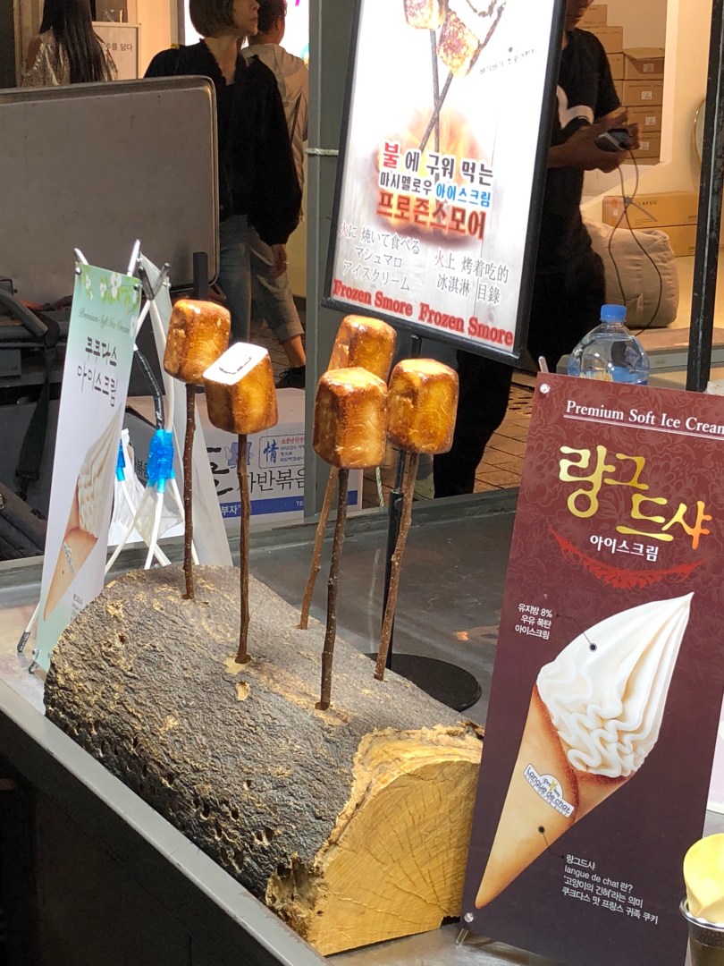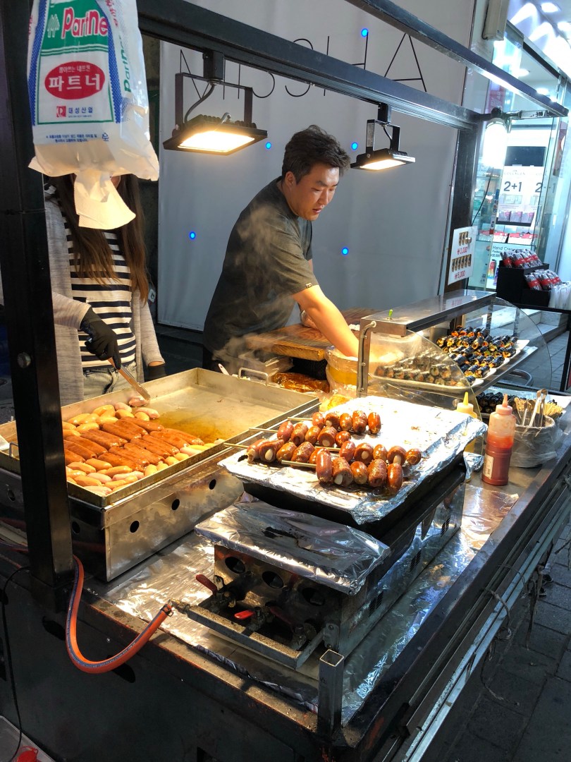 Selain alat kecantikan, tentu banyak juga penjual makanan bertebaran di kawasan ini. Ada es krim, egg taart, kue-kue, dan bahkan steak. Yang menarik adalah karena banyaknya turis asal Indonesia maka sebagian penjual bisa berbahasa Indonesia. Termasuk mas-mas penjual jajanan manis yang (kata temen gue) kulit mukanya mulusss kayak porselen 😂😂