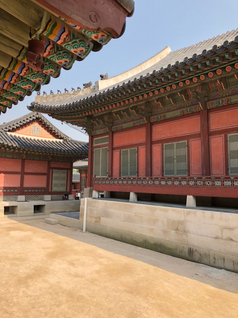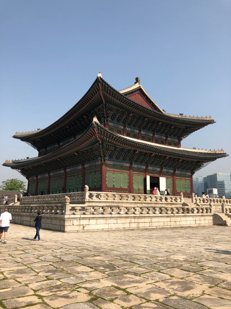 Kemudian jalan-jalan (beneran jalan kaki) berlanjut lagi ke Gyeongbokgung Palace. Istana raja yang indah ini jaraknya kira-kira 20 menit berjalan kaki dari Bukchon Hanok Village. Saya ingat pada kunjungan pertama dulu saya tidak bisa menikmati keindahan istana ini sepenuhnya karena harus mengurusi peserta tour dengan waktu terbatas. Kal ini saya benar-benar menikmati waktu saya di sini. Berkeliling di semua bangunan, mengambil banyak foto, sambil membayangkan kehidupan para raja jaman dulu.