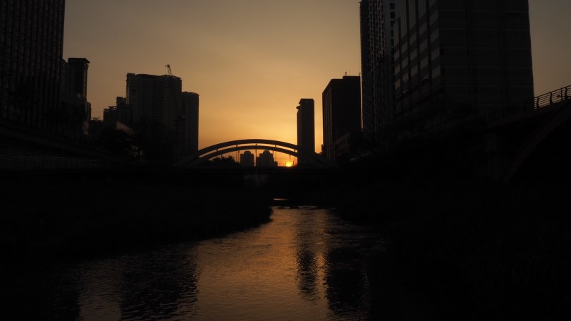 Setelah itu saya kembali keliling kota dan terdampar di daerah Cheonggyecheon untuk menikmati matahari terbenam di tepi sungai di tengah kota. Di tepi sungai kecil ini terdapat jalan kecil semacam jogging track di mana penduduk setempat bisa menghabiskan sore untuk lari, jalan santai, atau sekedar duduk-duduk menikmati matahari terbenam. Walaupun namanya sungai, jangan bayangkan seperti sungai di Jakarta. Sungai kecil ini dangkal, bersih, tidak berbau, dan bahkan ada banyak ikan yang hidup di situ. Mudah-mudahan nanti Kali Malang bisa dibuat sebagus ini ya sama Kang Emil 😁