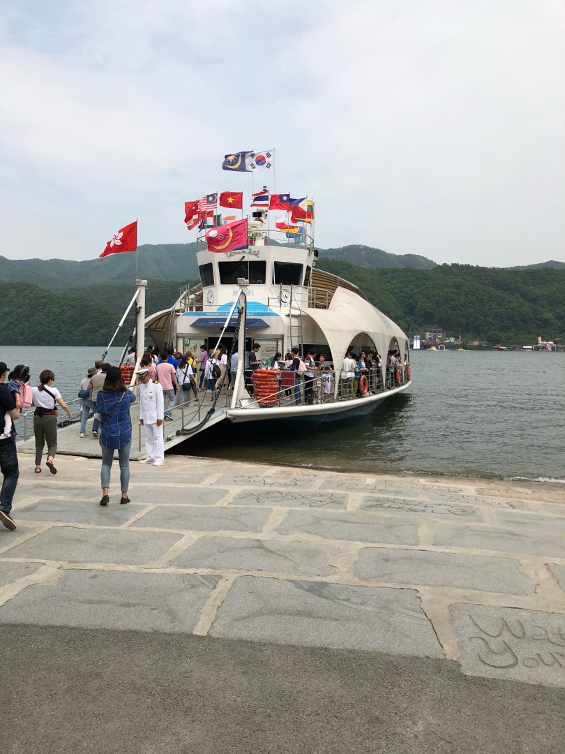 Di hari ketiga saya keluar dari Seoul dan mengunjungi Nami Island. Dari Seoul naik kereta sampai ke Gapyeong, lalu dari stasiun naik taksi sekitar 10 menit ke Nami Ferry Terminal dan lanjut naik ferry ke Nami Island. Gue pribadi gak terlalu suka dengan Nami Island. Pulau ini lebih cocok untuk wisata keluarga atau di musim gugur/dingin bisa untuk pacaran karena suasananya romantis. Tapi di musim panas rasanya tidak banyak yang bisa dinikmati di sini kecuali berfoto dengan latar belakang pohon hijau yang berbaris rapi menuju laut berwarna hijau toska. Namun saya bisa membayangkan seperti apa indahnya musim gugur di Nami Island saat daun-daun berwarna coklat dan berguguran ditiup angin. Mungkin saya harus kembali saat musim gugur kelak.