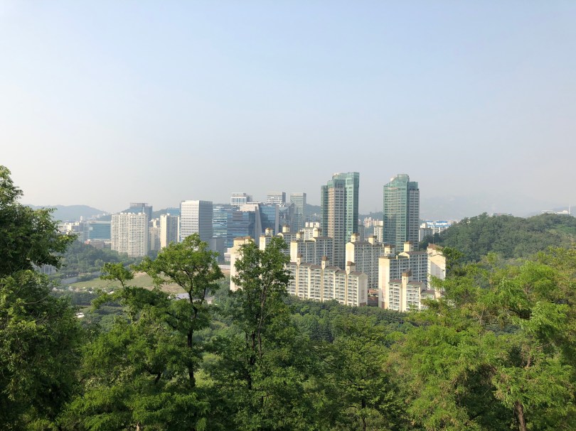 Konon Haneul Park ini sangat indah saat musim gugur tapi ternyata lumayan juga saat awal musim panas. Daun-daun terlihat hijau dan pemandangan ke arah pusat kota Seoul sangat indah. Ada juga beberapa dekorasi yang memang dipasang sebagai properti foto seperti bangku taman, ayunan, menara pandang, dan beberapa rumah burung.
