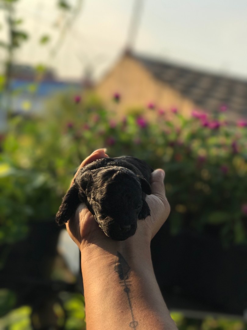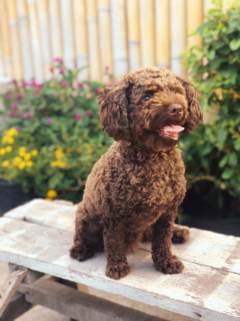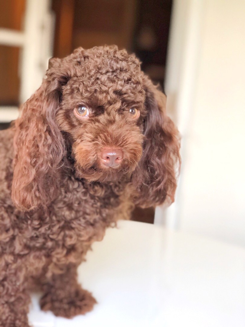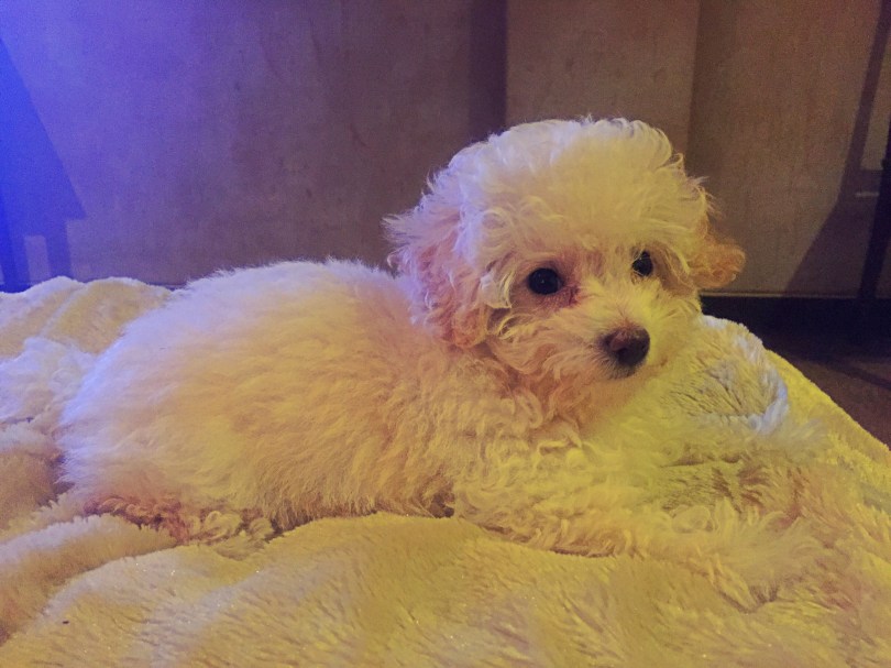 Anak ketiga ini paling manja di antara semuanya. Warnanya juga paling beda, sepertinya warisan dari kakek neneknya yang memang red toy poodle. Dalam situasi apapun dia selalu minta digendong. Kalo lagi bagi-bagi snack dia yang paling sabar nunggu gilirannya. Pas dia lahir dulu gue yang bantuin karena stuck di jalan lahir padahal kepalanya udah keluar. Mungkin itu sebabnya dia yang paling dekat dan manja ke gue, sampai suka berantem kalo ada anak lain yang gue gendong. Dia juga satu-satunya yang plasentanya gak dimakan sama ibunya (biasanya si ibu akan makan plasenta anaknya sesaat setelah lahir), tapi sifatnya paling mirip dengan ibunya. Makannya pelan dan harus dalam porsi kecil-kecil. Kalo tidur udah pasti nyari spot di atas kepala gue (bukan nindihin kepala, tapi di bantal di atas kepala). Paling suka tidur dan paling suka males-malesan.