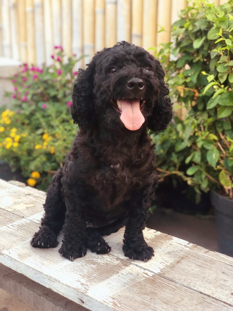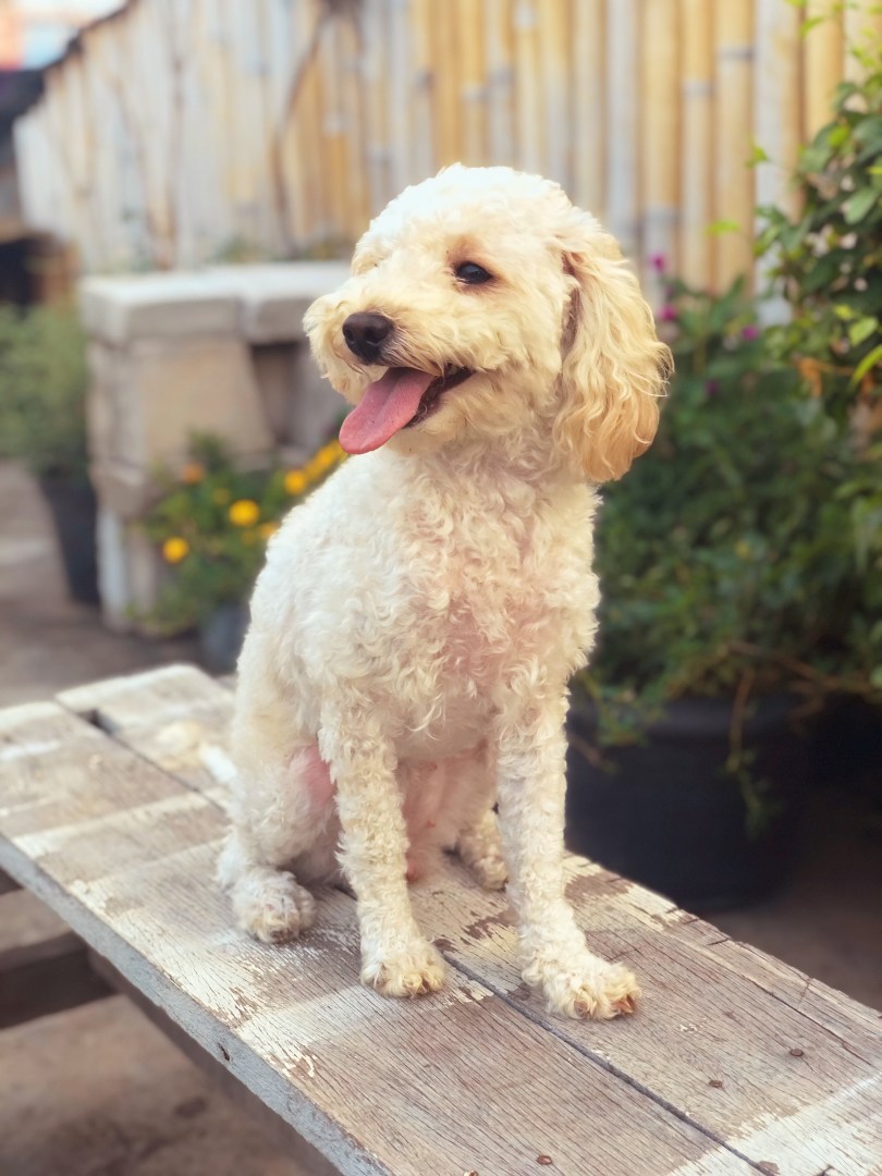 This is my first one, leader of the pack. He’s such a sweetheart. He’s my birthday gift. Pertama kali ketemu di breeder, dari sekian banyak anak yang ada, dia yang pertama langsung ndusel ke gue, yang lainnya cuek aja. Pas pertama kali dibawa main ke taman semua orang langsung ngerubungin. Dia dengan gampangnya langsung ndusel-ndusel ke orang yang ngelus-elus dia. Suka sekali makan, apa aja dimakan, sebanyak apapun dimakan, tanpa basa basi. Nanti kalo kekenyangan tinggal dimuntahin hahaha. Sekarang dia sedikit overweight, jadi terpaksa harus diatur makannya. He’s always curious about anything dan pendengarannya paling tajam. Gue lagi parkir pulang kantor aja, dia udah ngegonggong, padahal di lantai 3. Oya, dia hobi gigitin kaki kursi & kaki meja, dan sekarang sudah menurunkan hobi ini ke anak-anaknya 😂